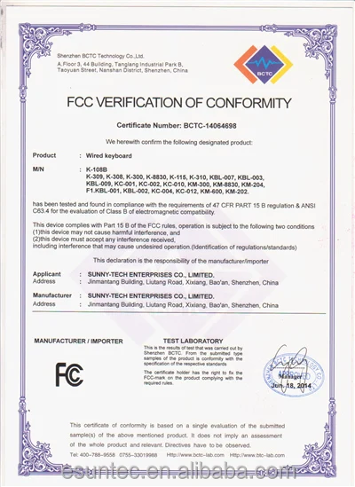 Certificate : CE,FCC,ROHS Available
